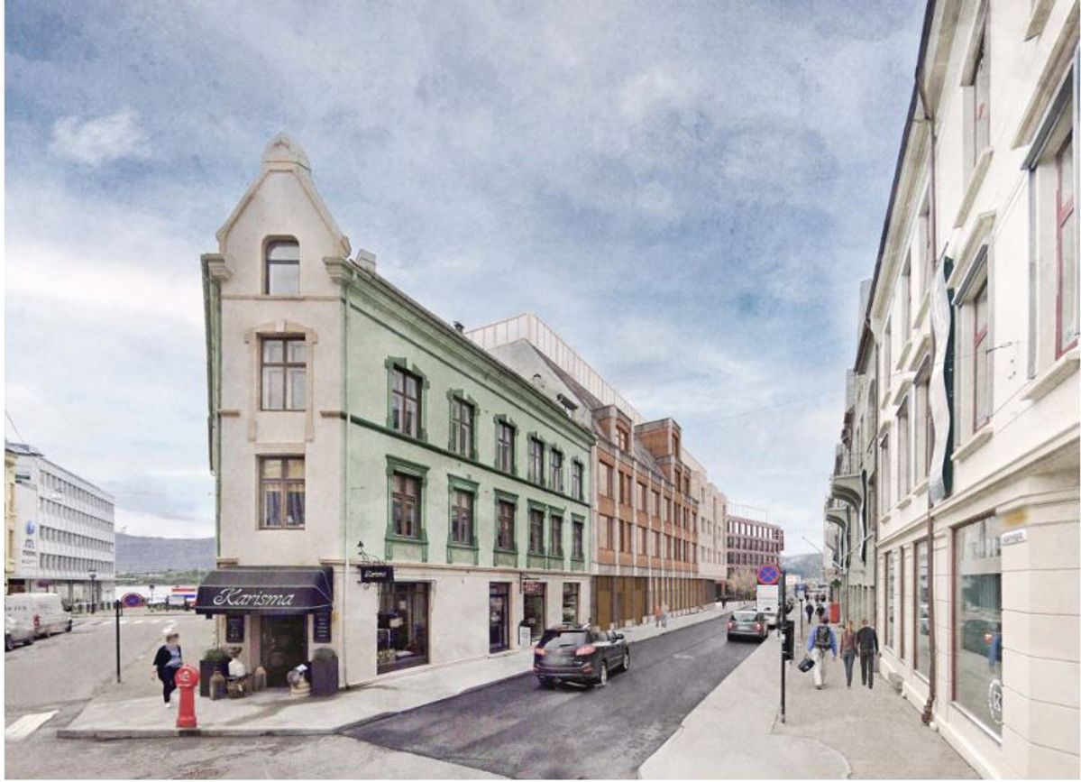 Gjennom fasadenes tilpasninger til omkringliggende Jugend-bebyggelse ønsker vi at bygget blir en del av eksisterende byarkitektur, sier arkitekt Karl Eriksson i VerkStad Arkitektur.