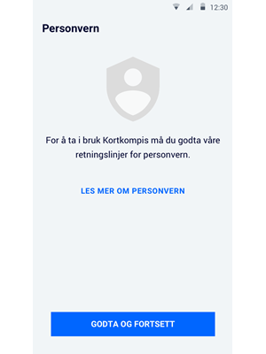 Dere skal nå få opp et bilde som forklarer hvilke steg dere må innom for å aktivere appen. Først må retningslinjene for personvern godkjennes.