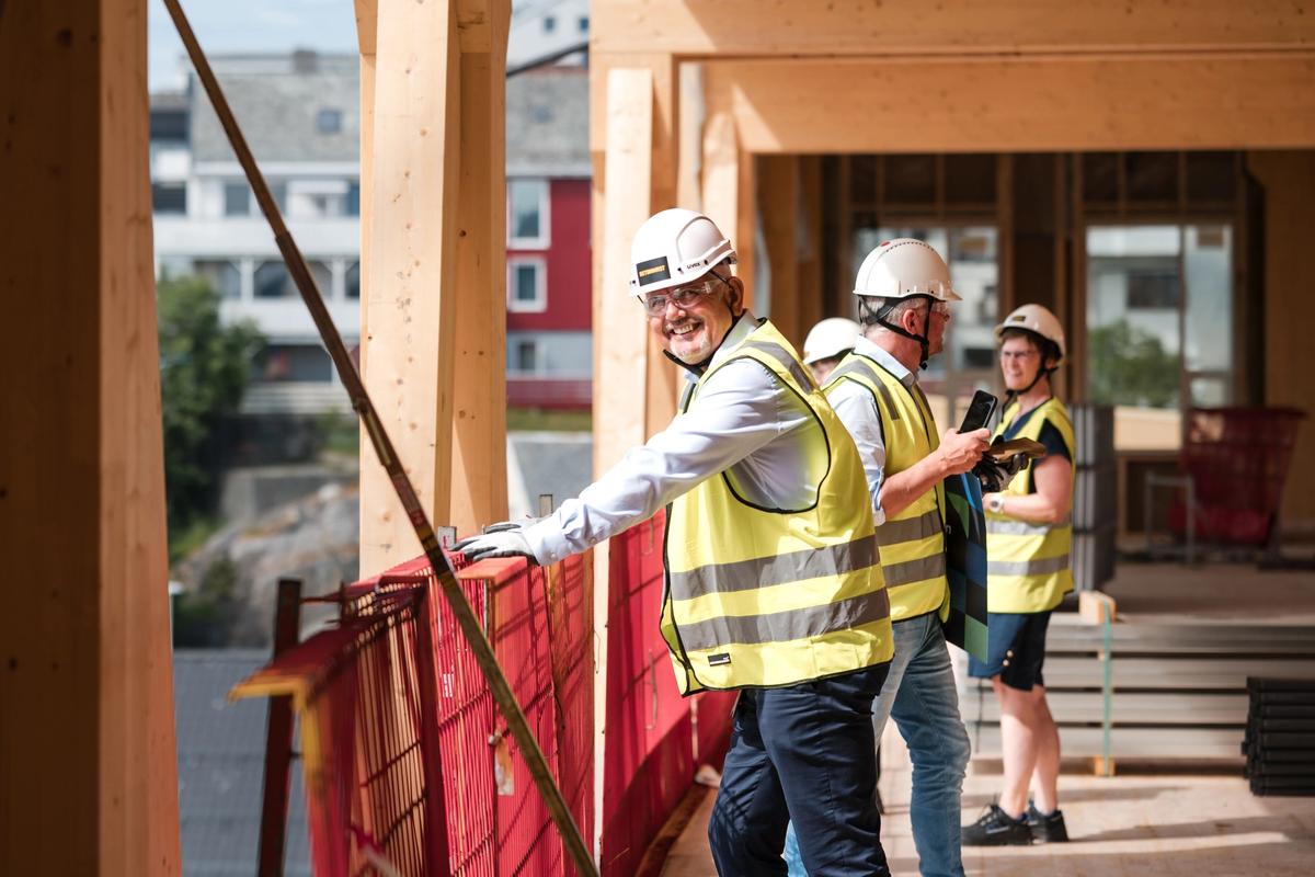 Sparebanken Møre offentliggjorde tildelingen på 5 million kroner til etablering av Newton-rommet sammen med ordfører Kjell Neergaard på tomten til Campus Kristiansund denne uken.