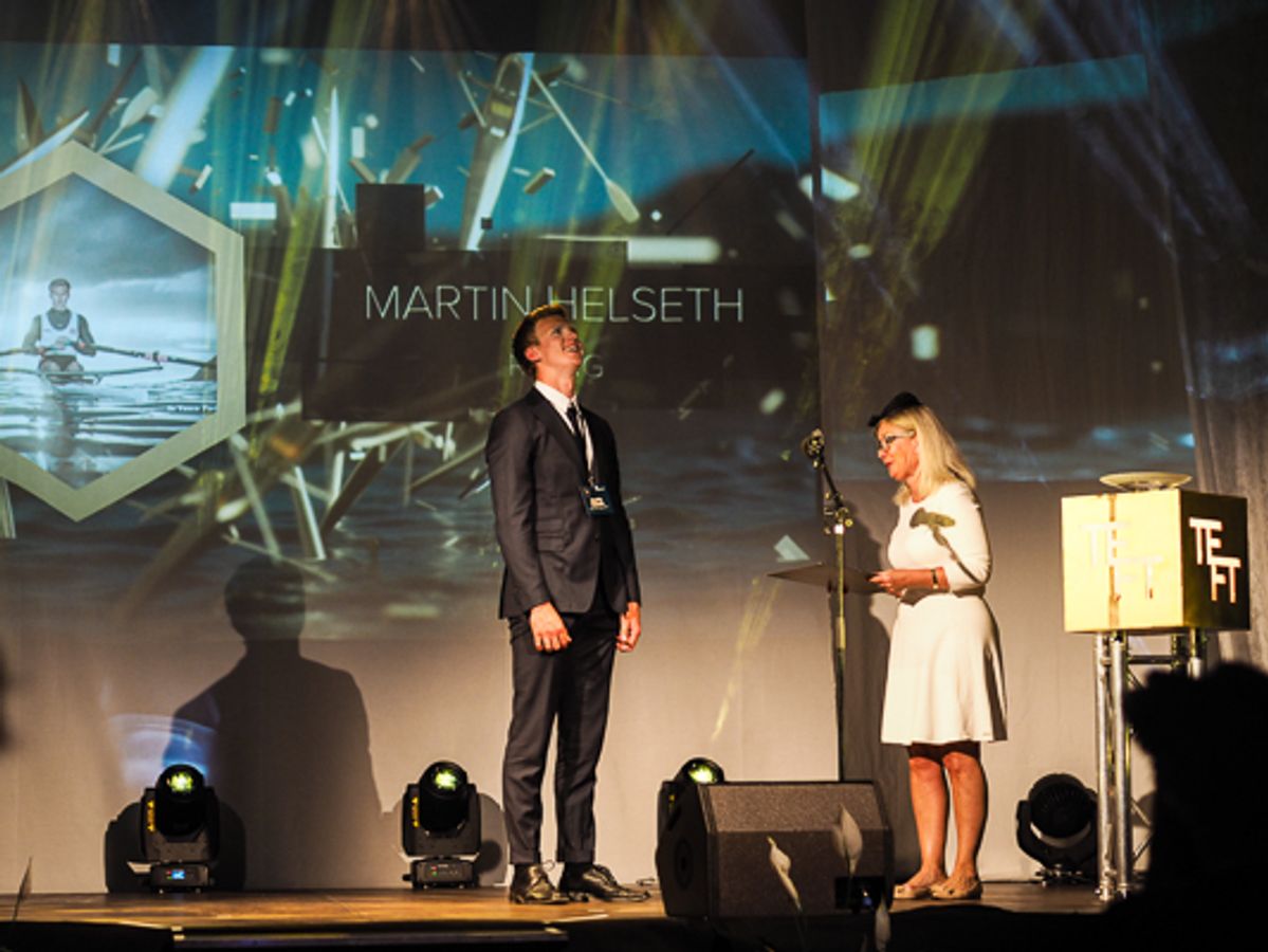 Martin Helseth (23) fra Aksla i Ålesund rodde sine første tak i Aalesunds Roklub, men trener nå daglig på Olympiatoppen sammen med resten av landslaget i roing. I fjor slo han Olav Tufte i singelsculler i NM – og i år var han i samme båt som Tufte da de rodde EM-finale i dobbeltfirer. Helseth har også to sølv fra U-23 VM og flere medaljer i nordisk mesterskap og norgesmesterskap. Han trener mellom 25 og 30 timer i uka i tillegg til deltidsstudier i økonomi.Mottaker av TEFT stipend på kroner 100.000