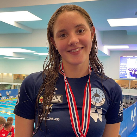 Selma (17) ønsker å utvikle seg som svømmer og konkurrere på stadig høyere nivå, med mål om å kvalifisere seg til landslaget og representere Norge i VM og OL. Hun har flere medaljer fra NM og nordiske mesterskap, og har satt klubb- og kretsrekorder. Selma vil bruke idretten til å lære om disiplin, samarbeid og mental styrke, og inspirere flere unge i Ålesund til å satse på svømming. Stipendet vil dekke reiser, utstyr og treningssamlinger, slik at hun kan satse enda mer målrettet.